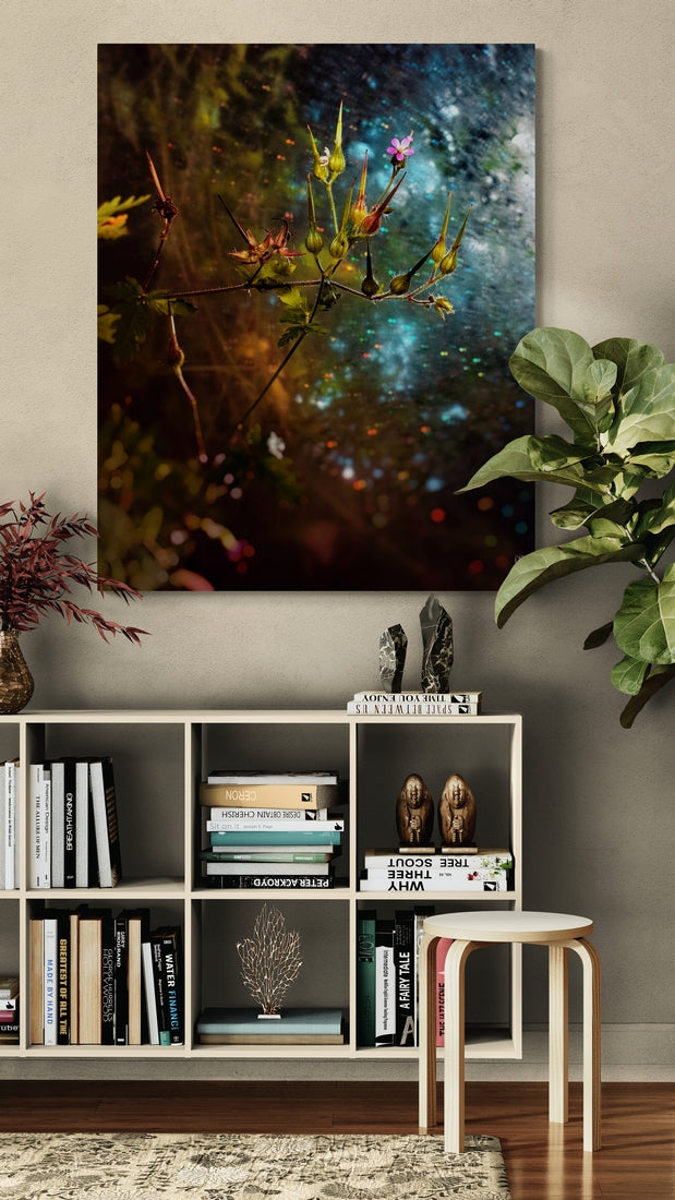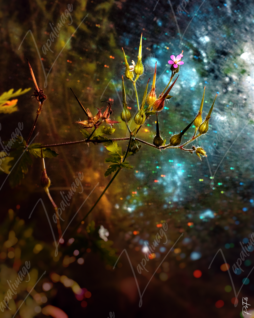 Fleur d'oxalis survole l'eau.