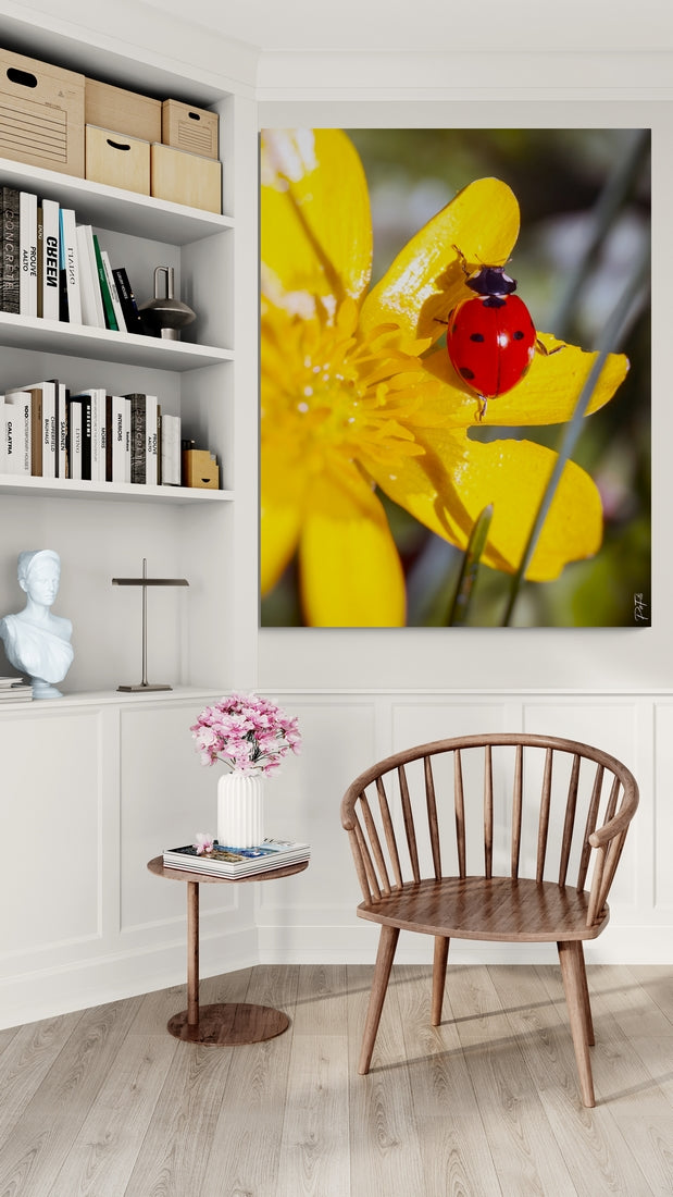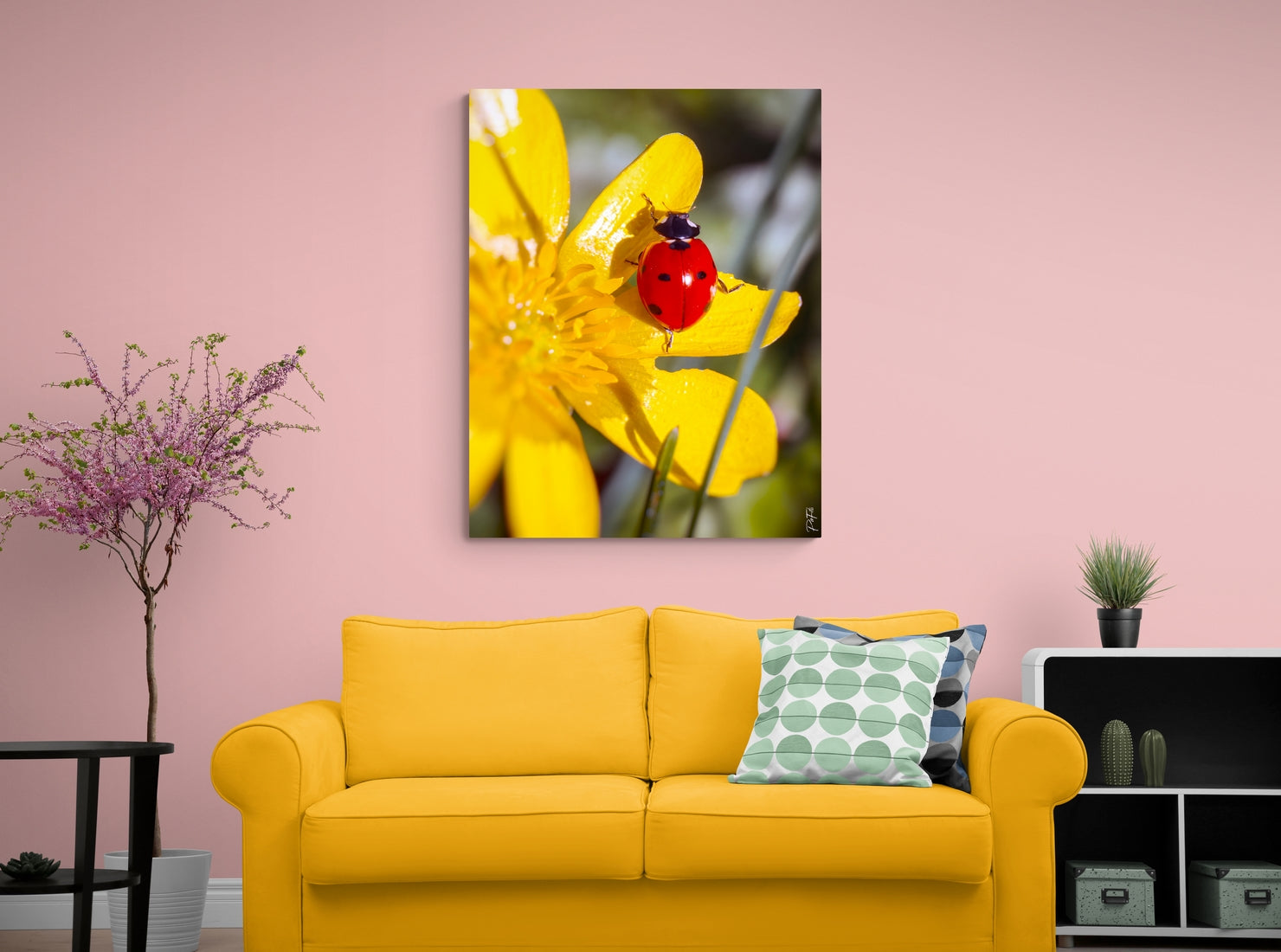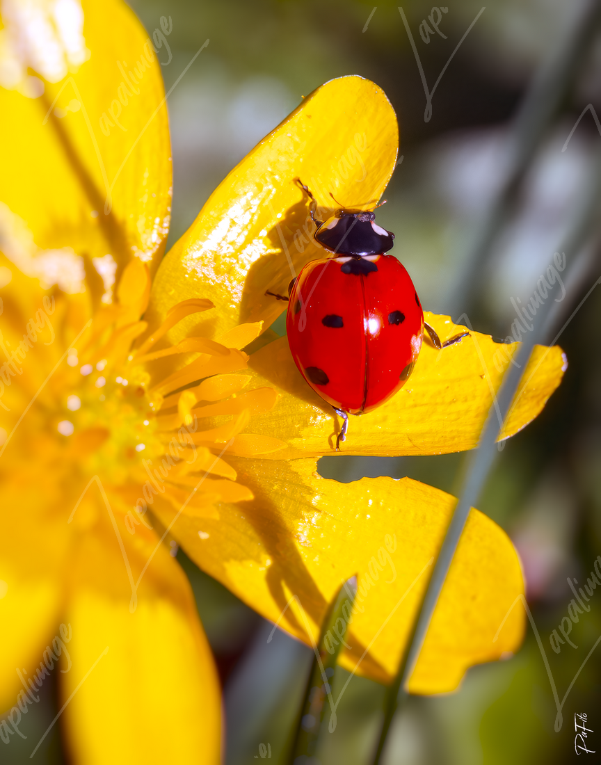 Coccinelle sur une bouton d'or( Ranunculus acri).